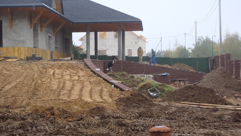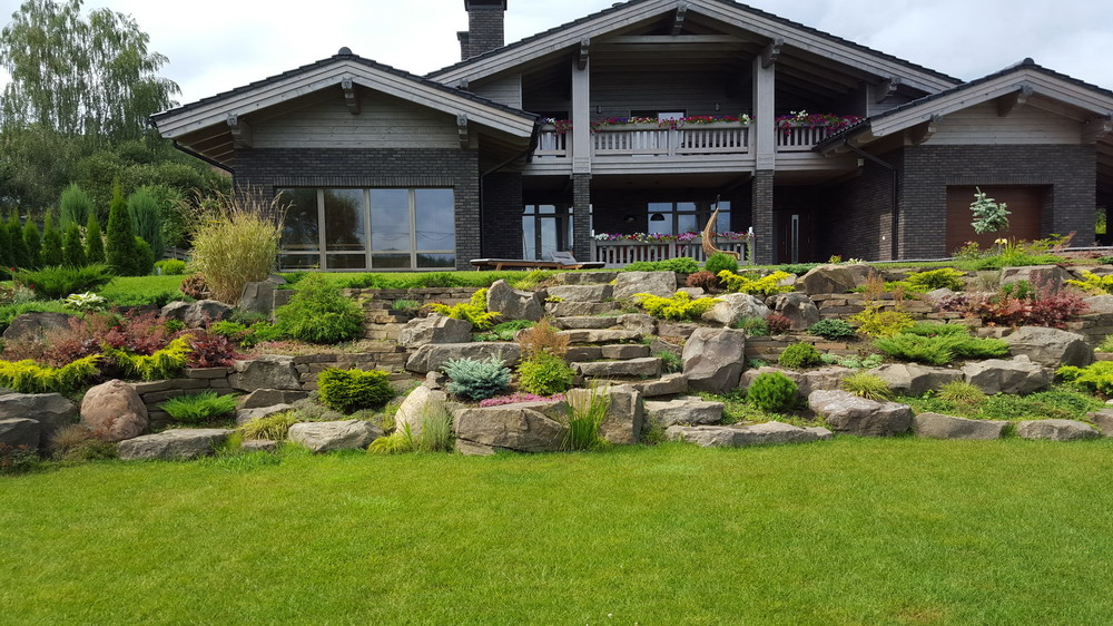 • Организация рельефа (террасы, уклоны для водоотведения, выравнивание, геопластика)