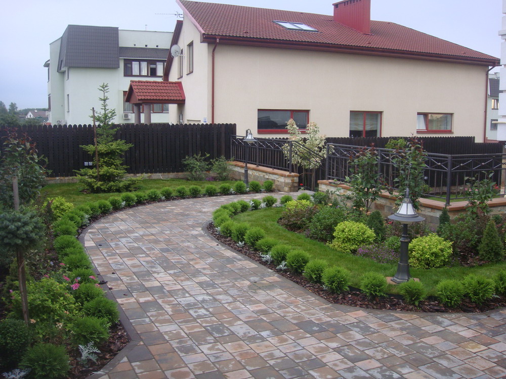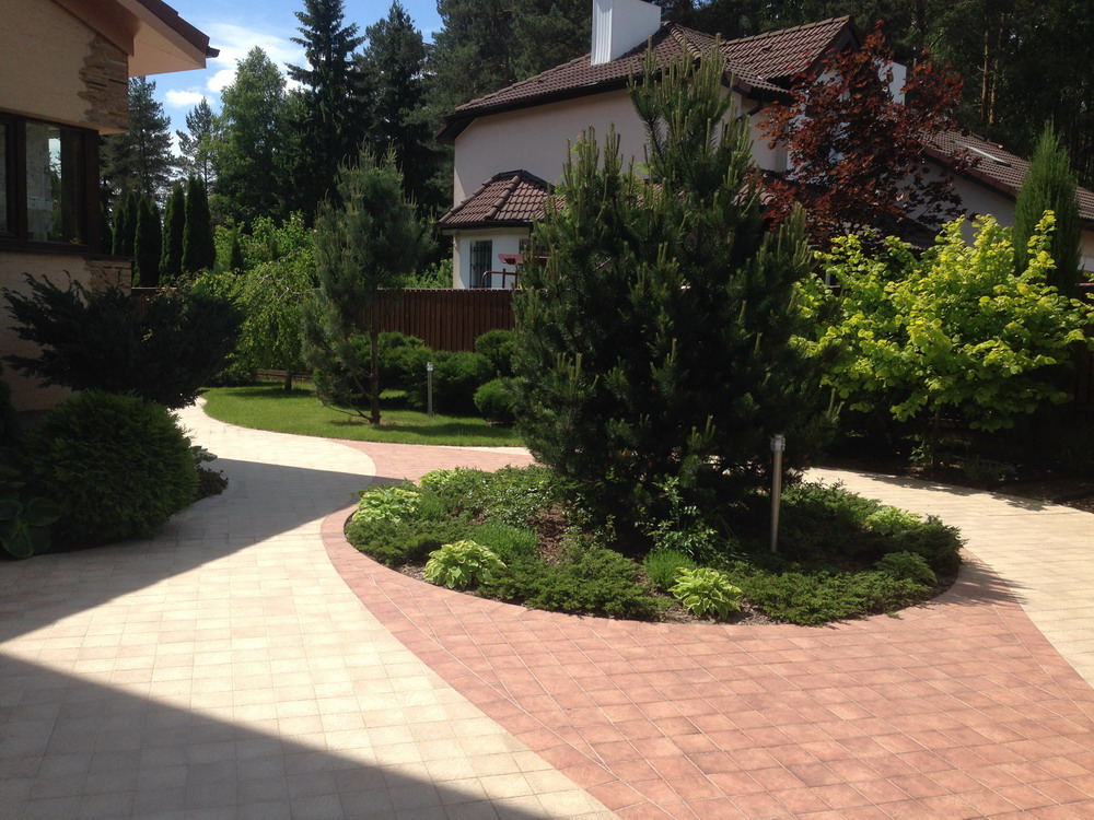 Например, дорогостоящее мощение плиткой можно значительно сократить, организовав другие виды покрытий на второстепенных дорожках и площадках.
