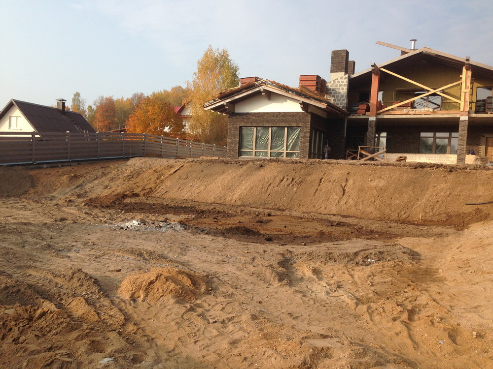 • Перемещение земляных масс, выкопка котлованов для водоемов (если необходимо)