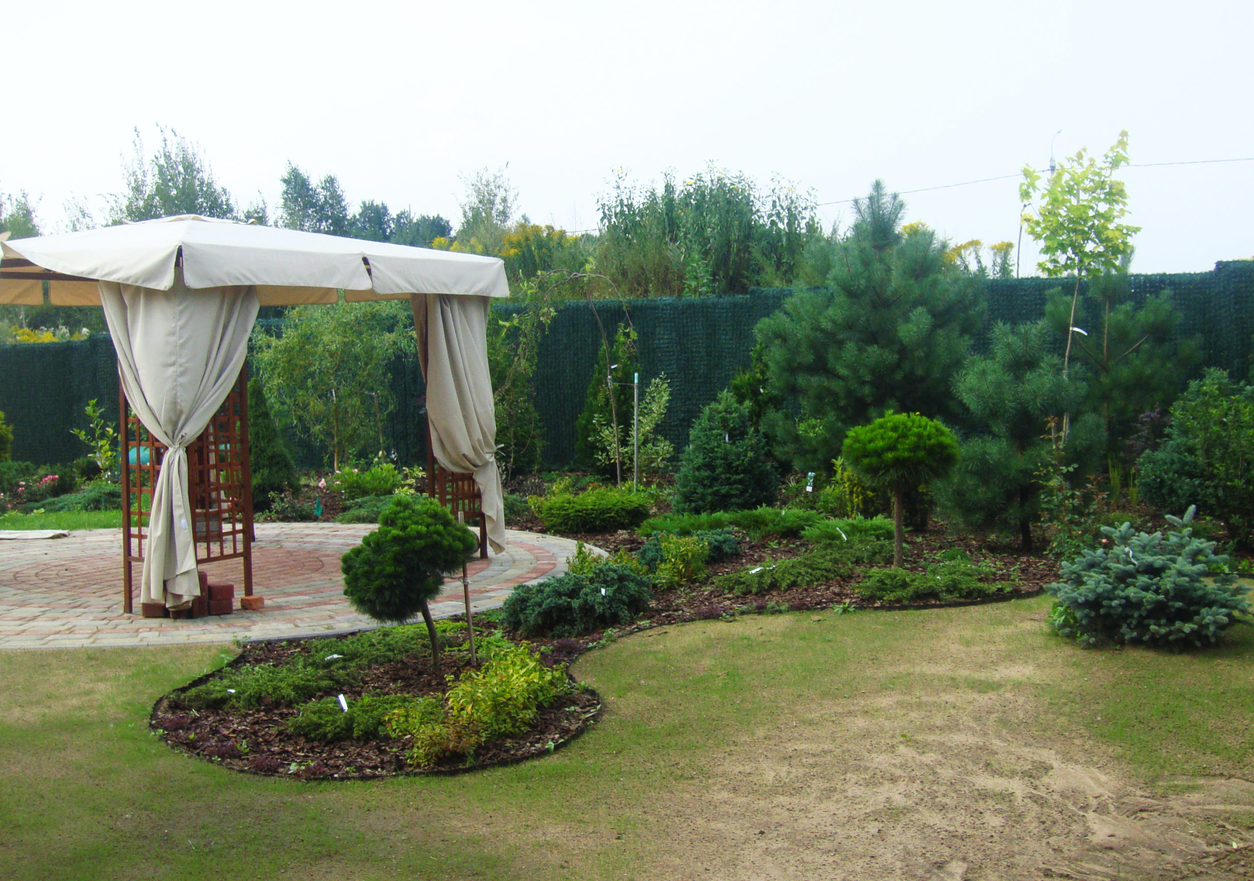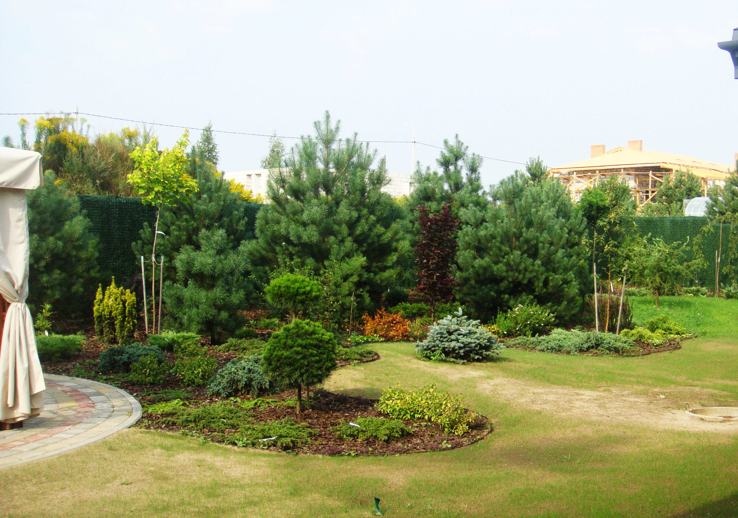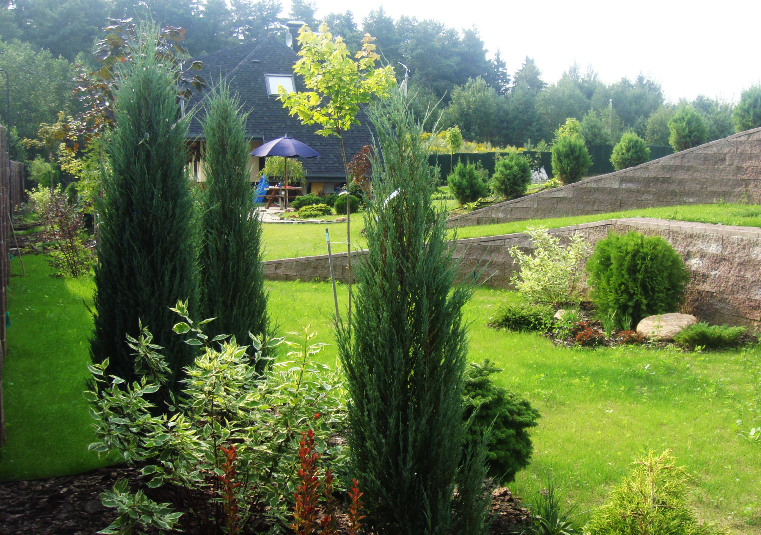 Большой участок для дружной семьи на котором мы сохранили существующие сосны, дополнив декоративными посадками. Разницу высот этого непростого участка подчеркнули естественным склоном в одной стороне и подпорными стенками в другой.