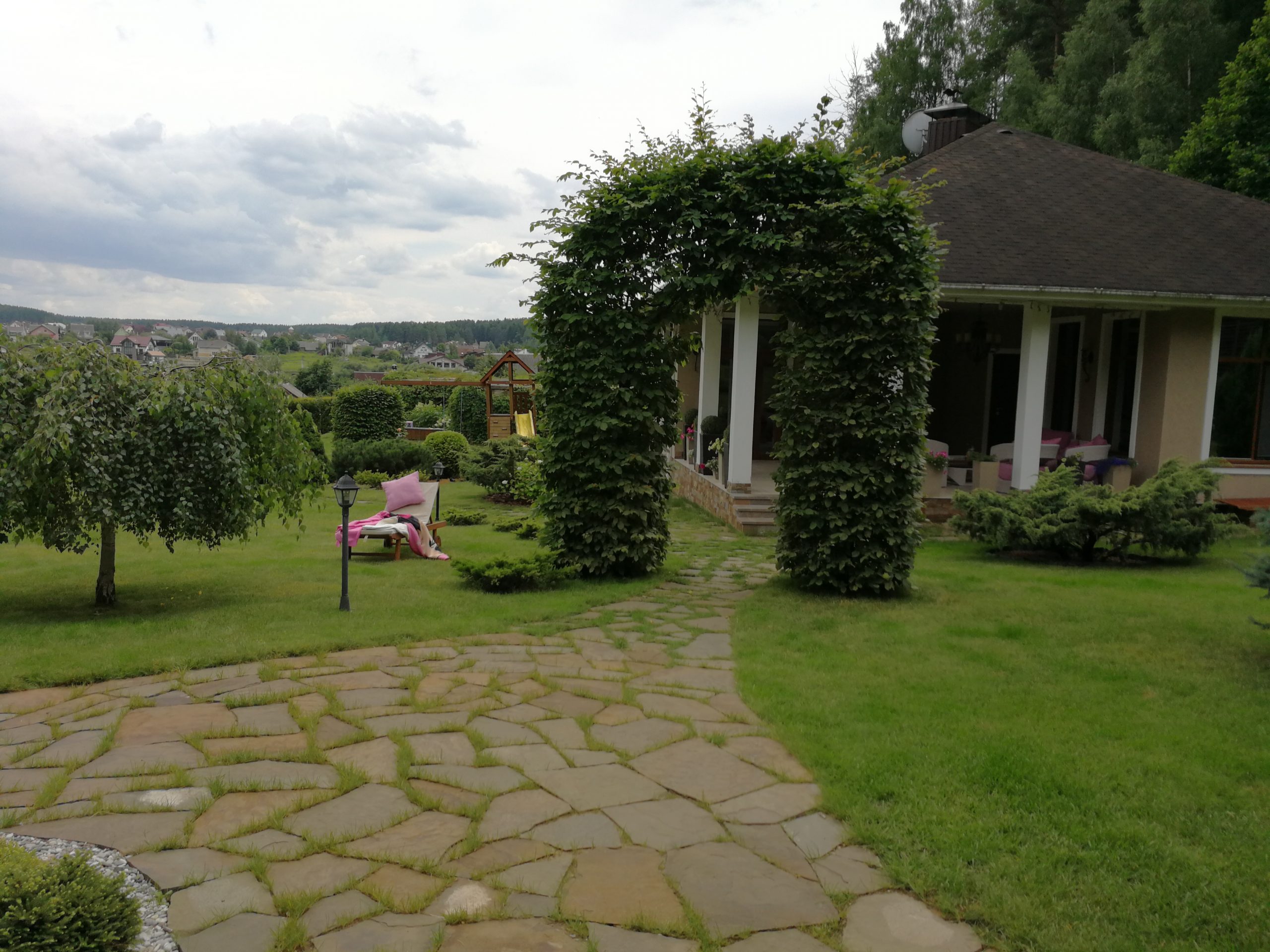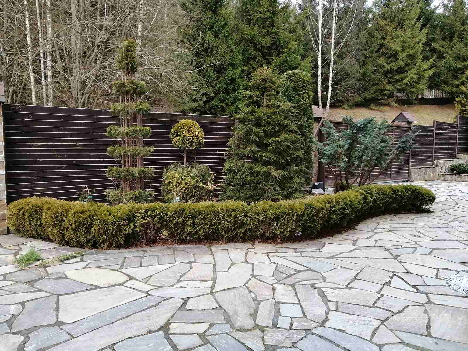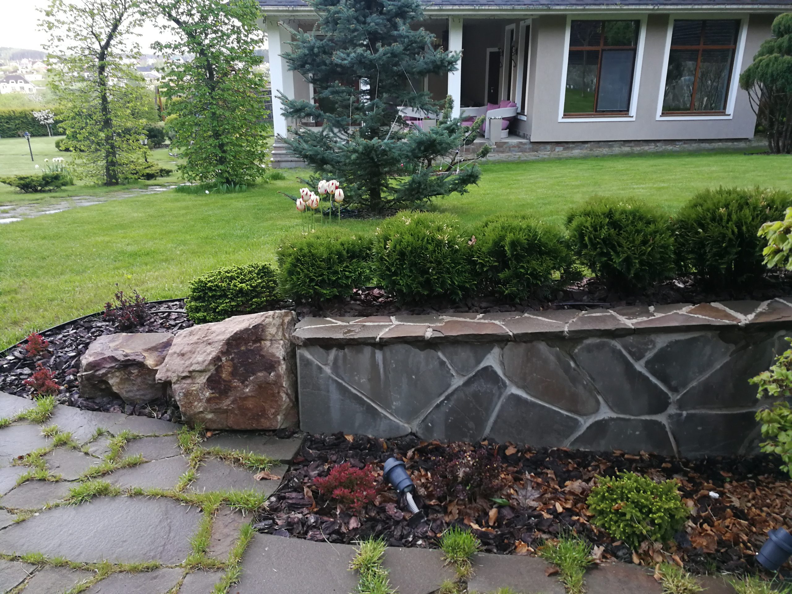 Отдавая дань экологичности, все мощение мы выполнили из натурального камня.