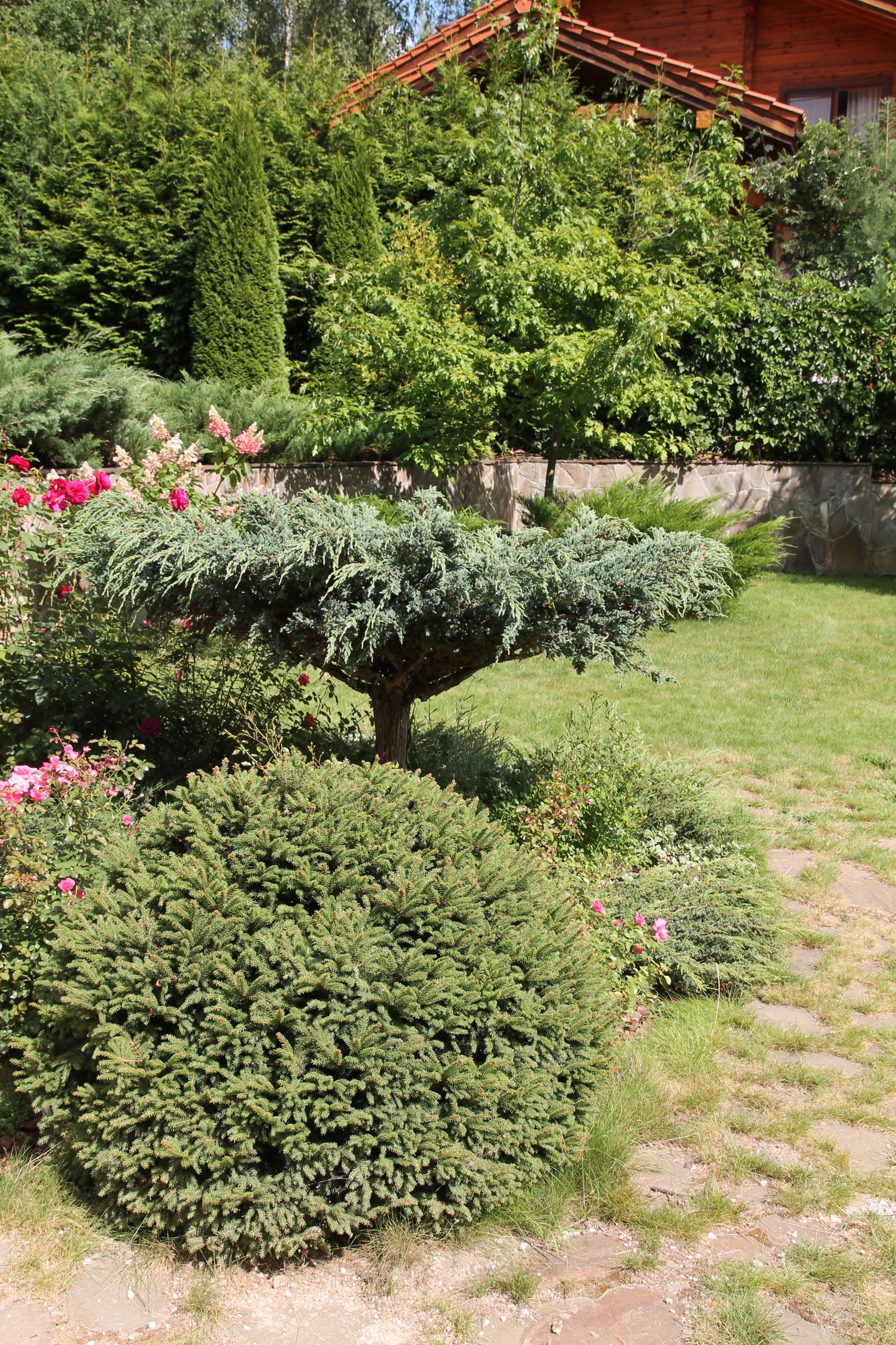 Свойственная всем нашим проектам глубокая продуманность и оригинальность планировки, сочетание стриженной геометрии и красиво сформированных крон, спокойная нейтральная гамма цветения, лаконичный стиль посадок, неприхотливость и практичность в уходе делают и этот сад привлекательным круглый год